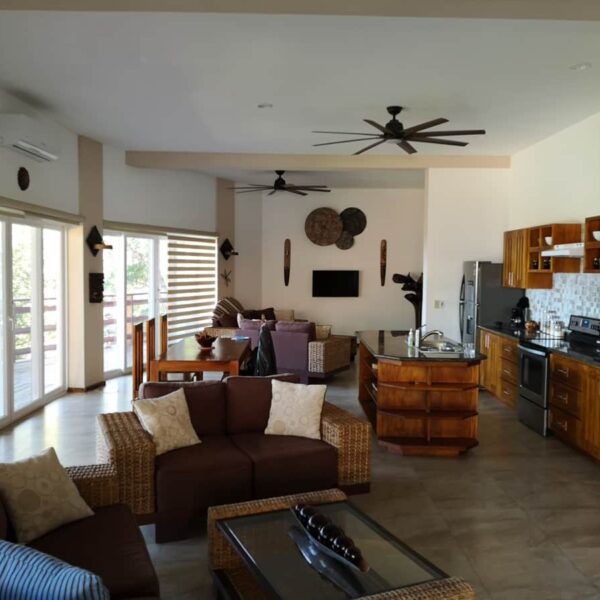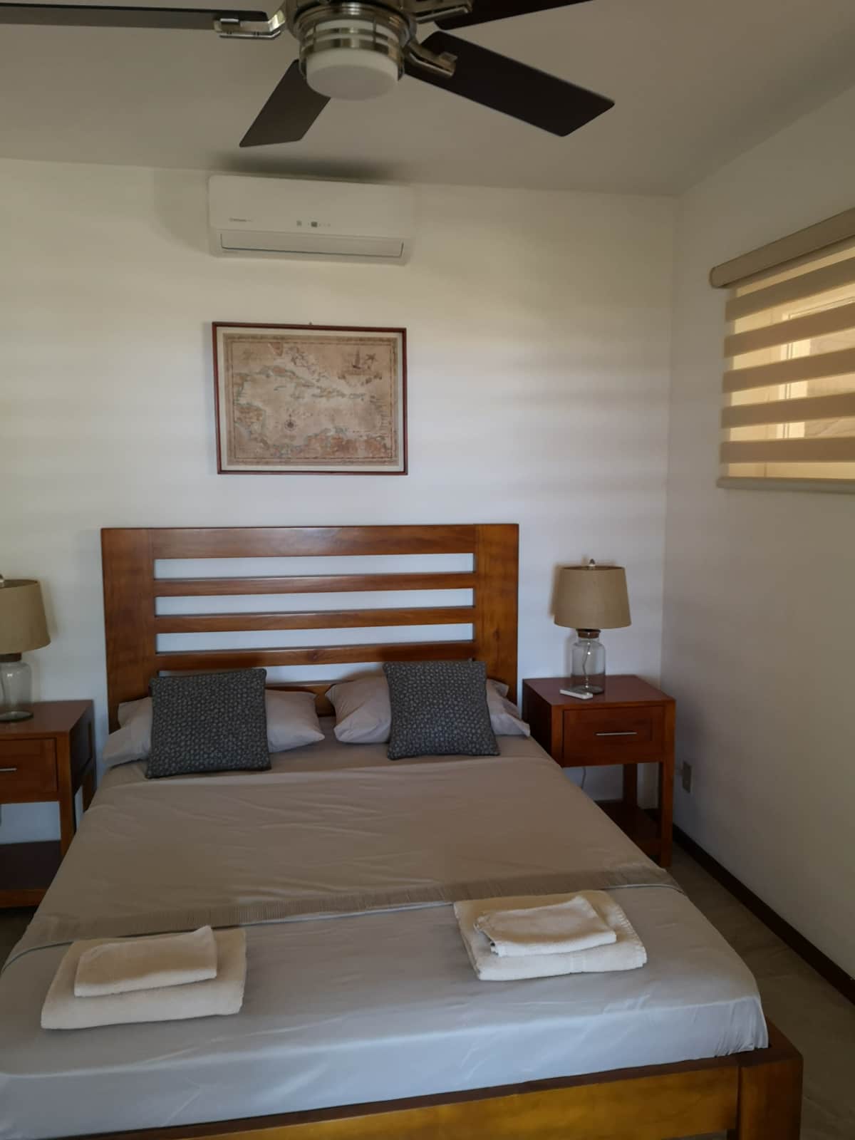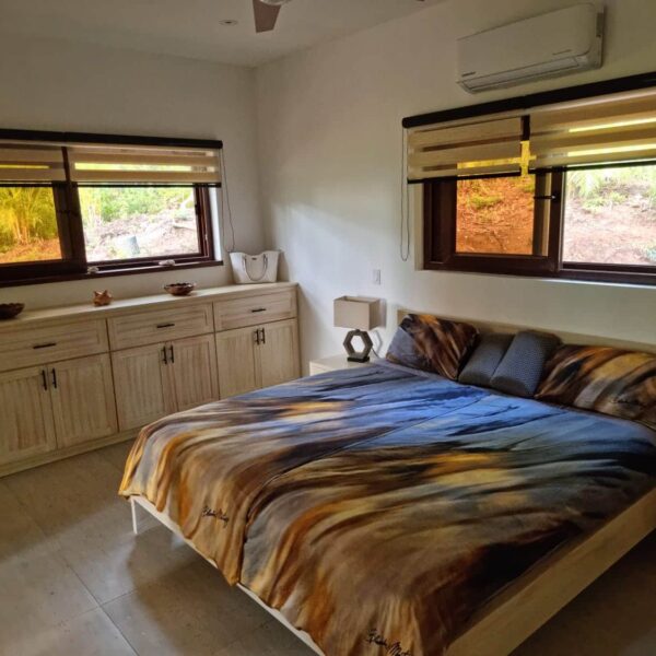 Pro náročnější hosty máme k dispozici ubytování v prostorné vile, která ve čtyřech samostatných ložnicích poskytne zázemí až pro 8 osob. Vila o rozloze 170m² (s terasou 300m²) je ideální volbou pro rodinu či partu přátel. Dominantou vily je velká, plně vybavená kuchyň, která plynule přechází v obývací část. Z obývací části je přístup na terasu, ze které je nádherný výhled na okolní krajinu a Karibské moře. V domě jsou také dvě koupelny a každá místnost je klimatizována. Nechybí ani připojení k internetu a chytrá televize.