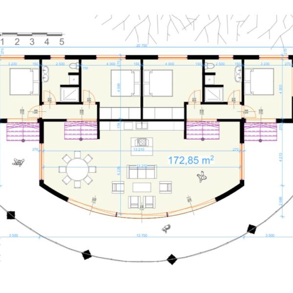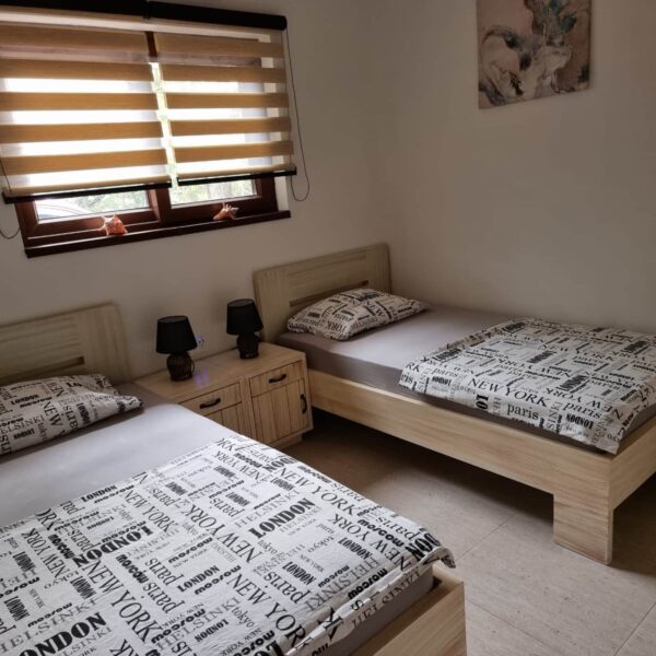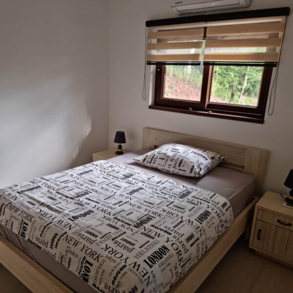 Vila obsahuje dvě ložnice, obývací pokoj spojený s plně vybavenou kuchyní, koupelnou včetně WC, venkovní sprchou, terasou s posezením a technickou místností vybavenou nejmodernější pračkou a sušičkou.